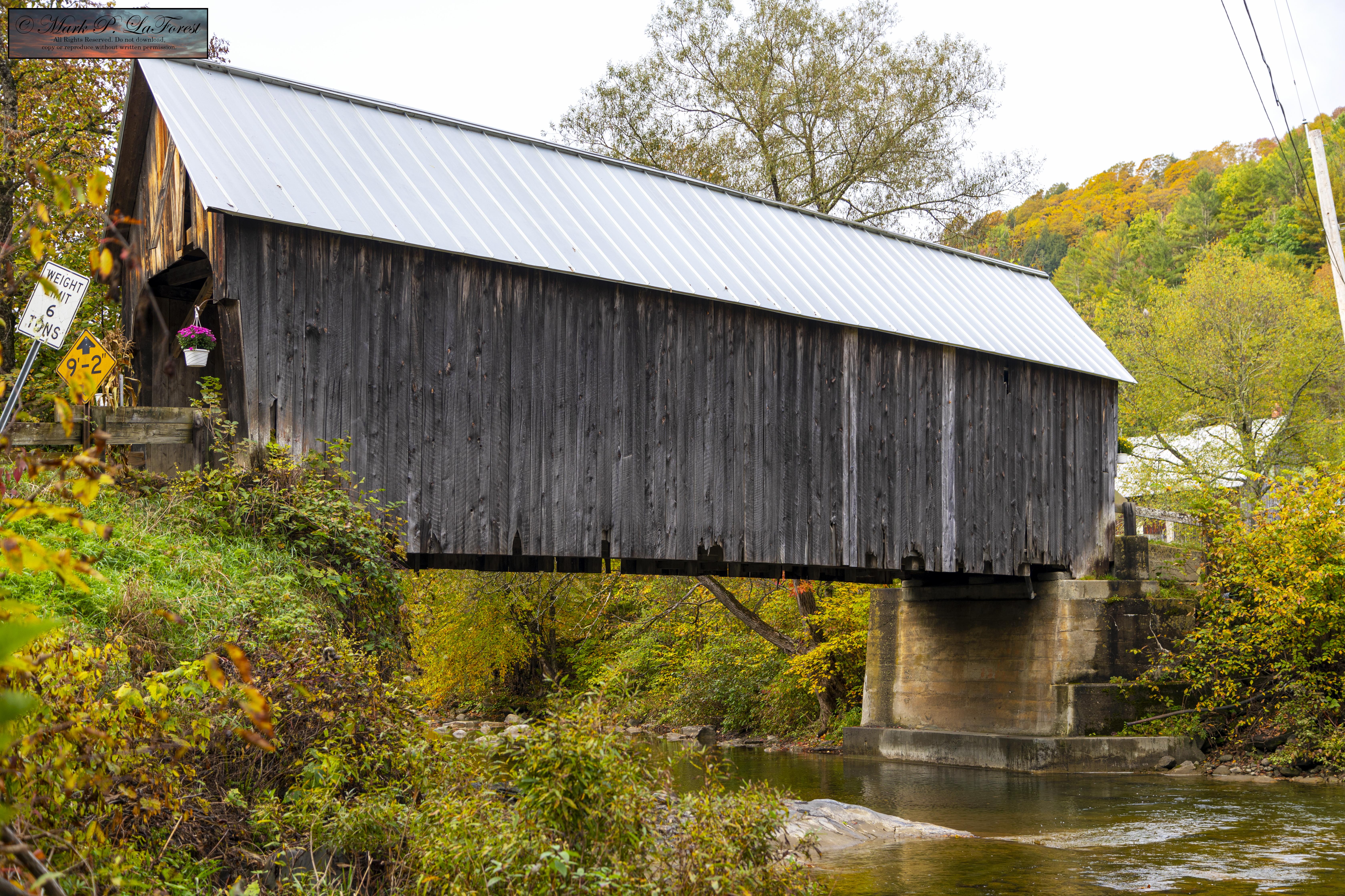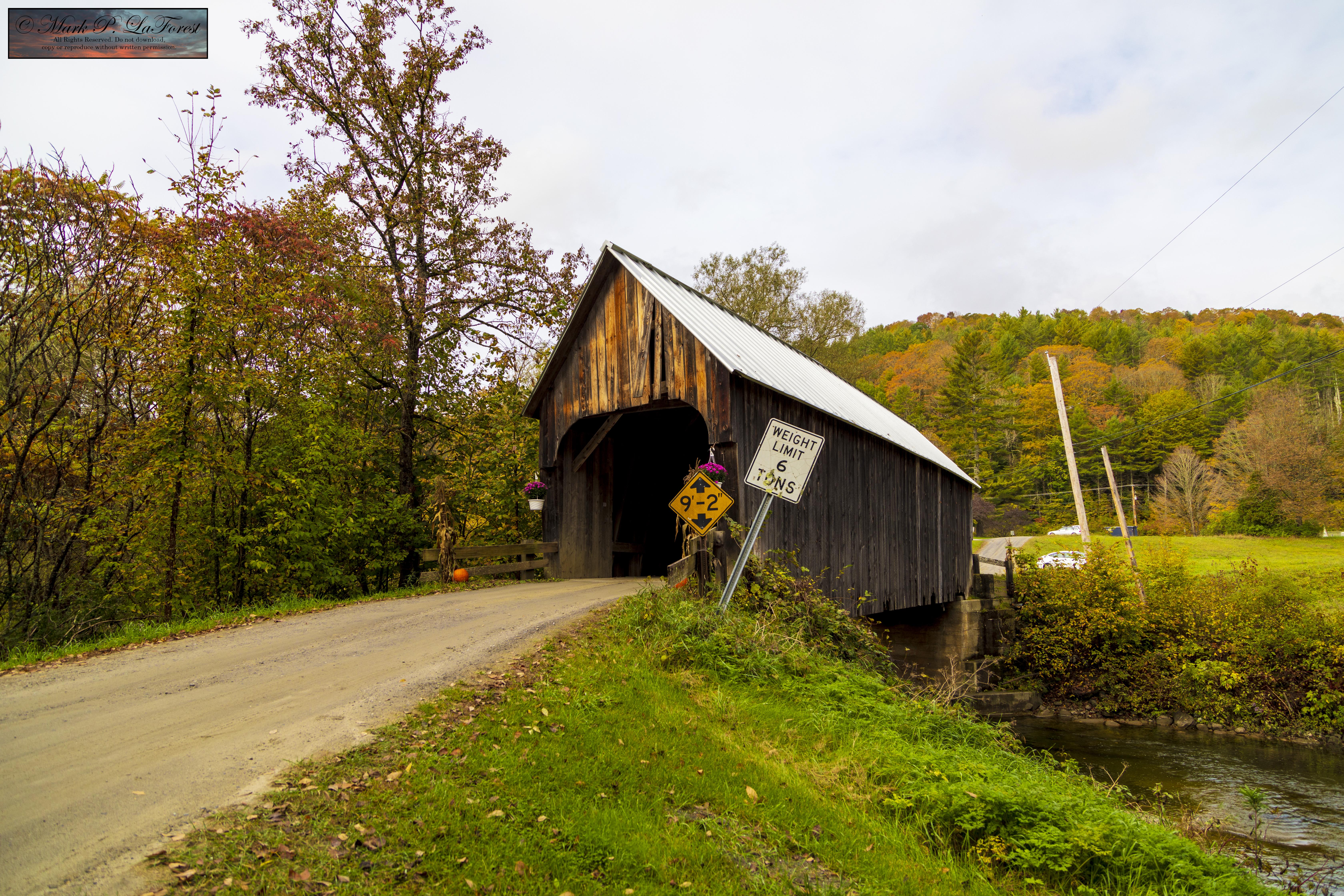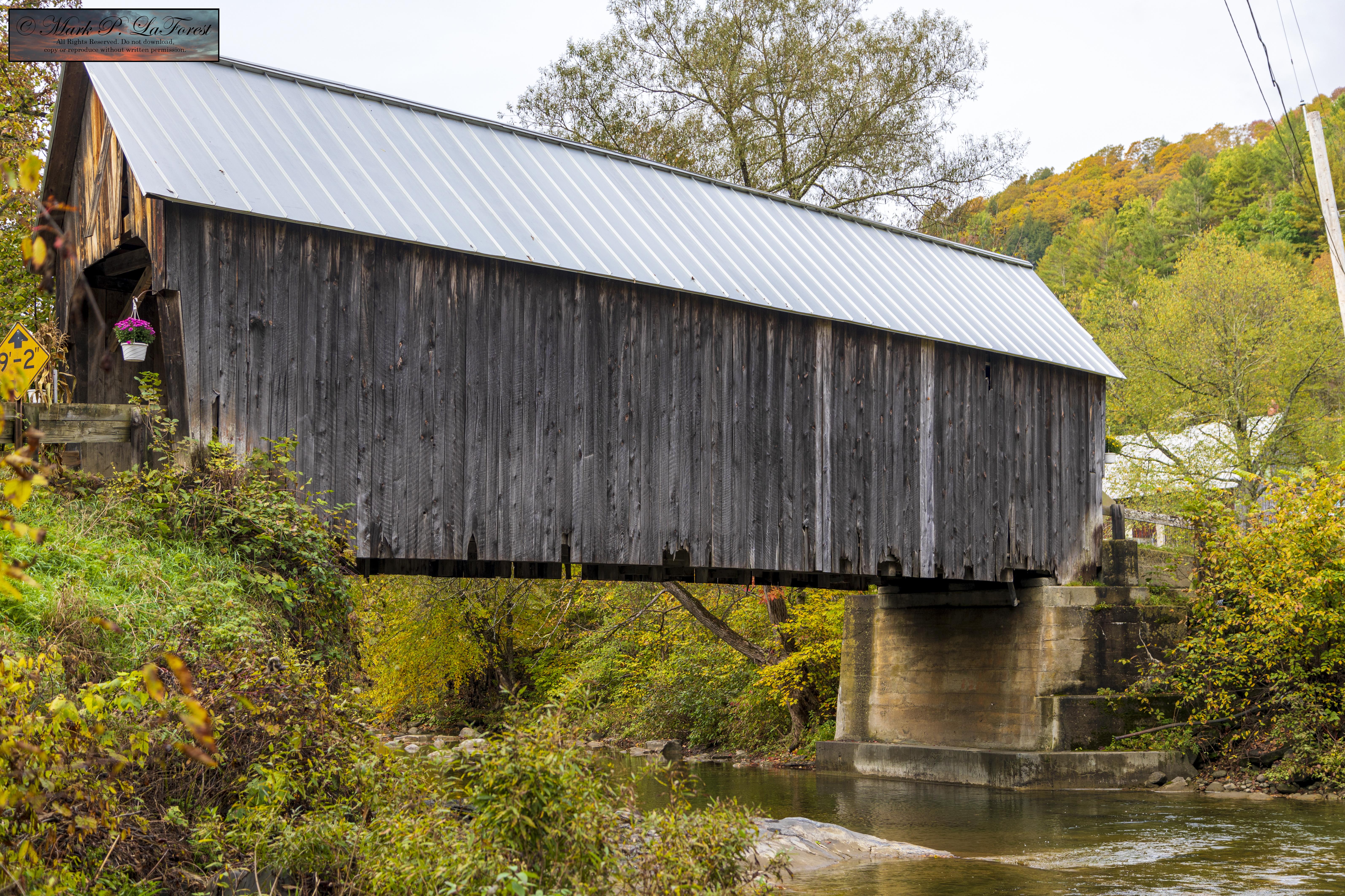 The bridge was built in 1902 and is one of only two documented early 20th-century bridges in the state; the other is the Kingsbury Covered Bridge in nearby Randolph, built in 1904. The bridge is one of five in Tunbridge, which, when combined with one in Chelsea, form a remarkably dense concentration of covered bridges across a single waterway in the state. -- Source Wikipedia