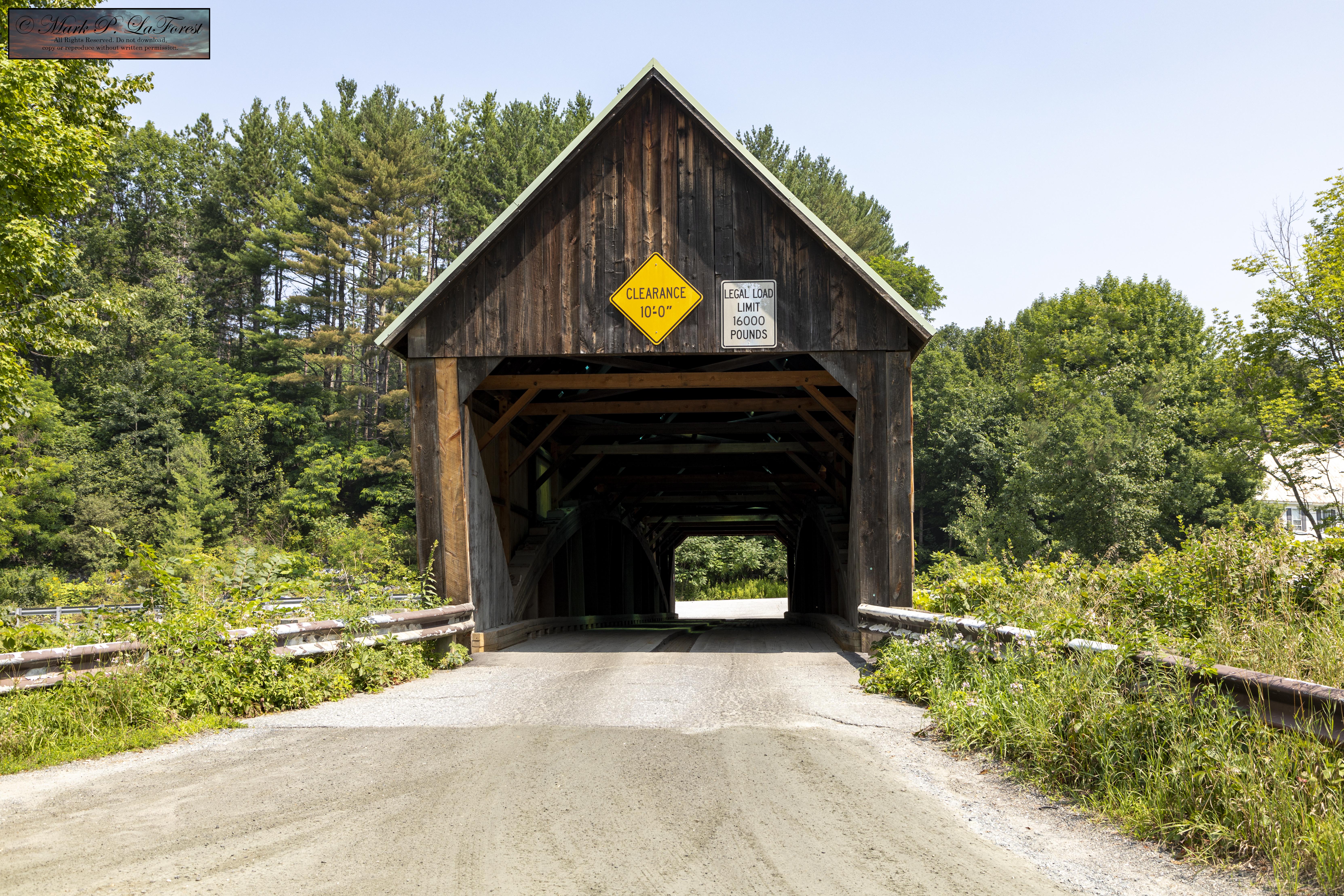 The bridge was built in 1877 by R.W. Pinney and B.H. Pinney (of Bridgewater and Woodstock, respectively), about thirty years after the Pratt truss was patented. According to covered bridge history Richard S. Allen, it is the only known surviving use of the Pratt truss in wood; this form is seen much more widely in metal bridges built later. -- Source Wikipedia