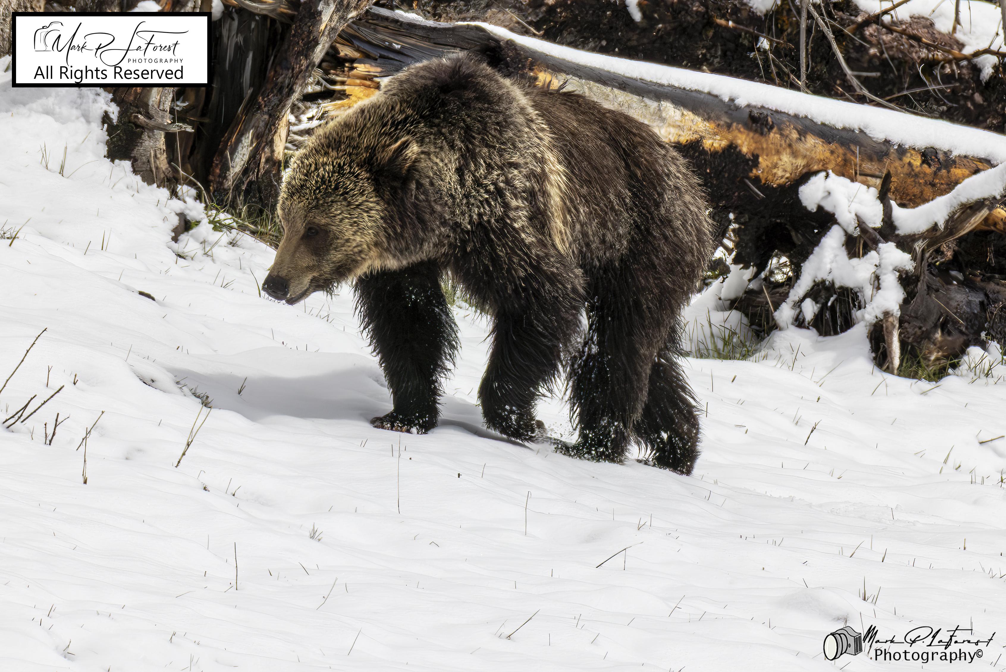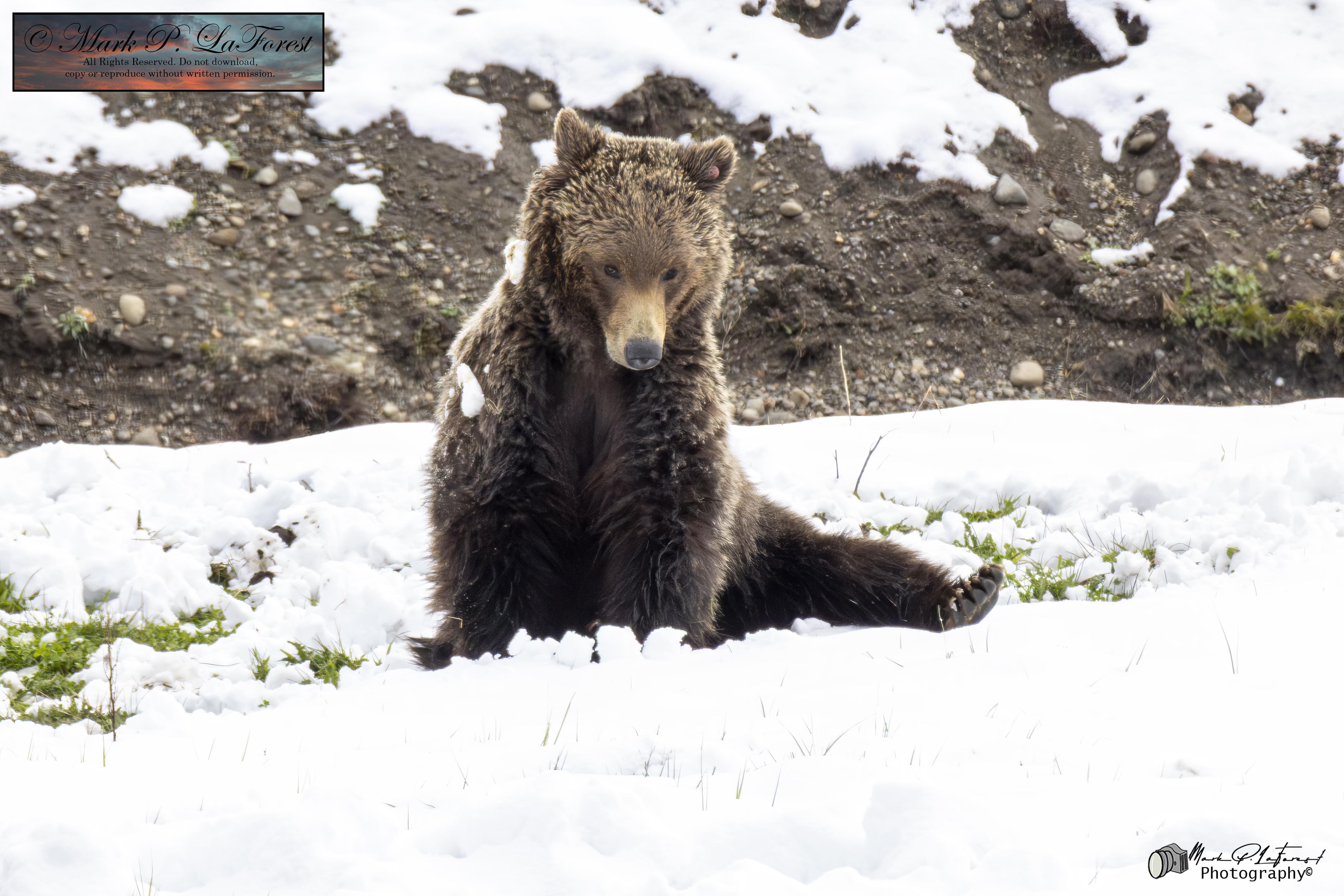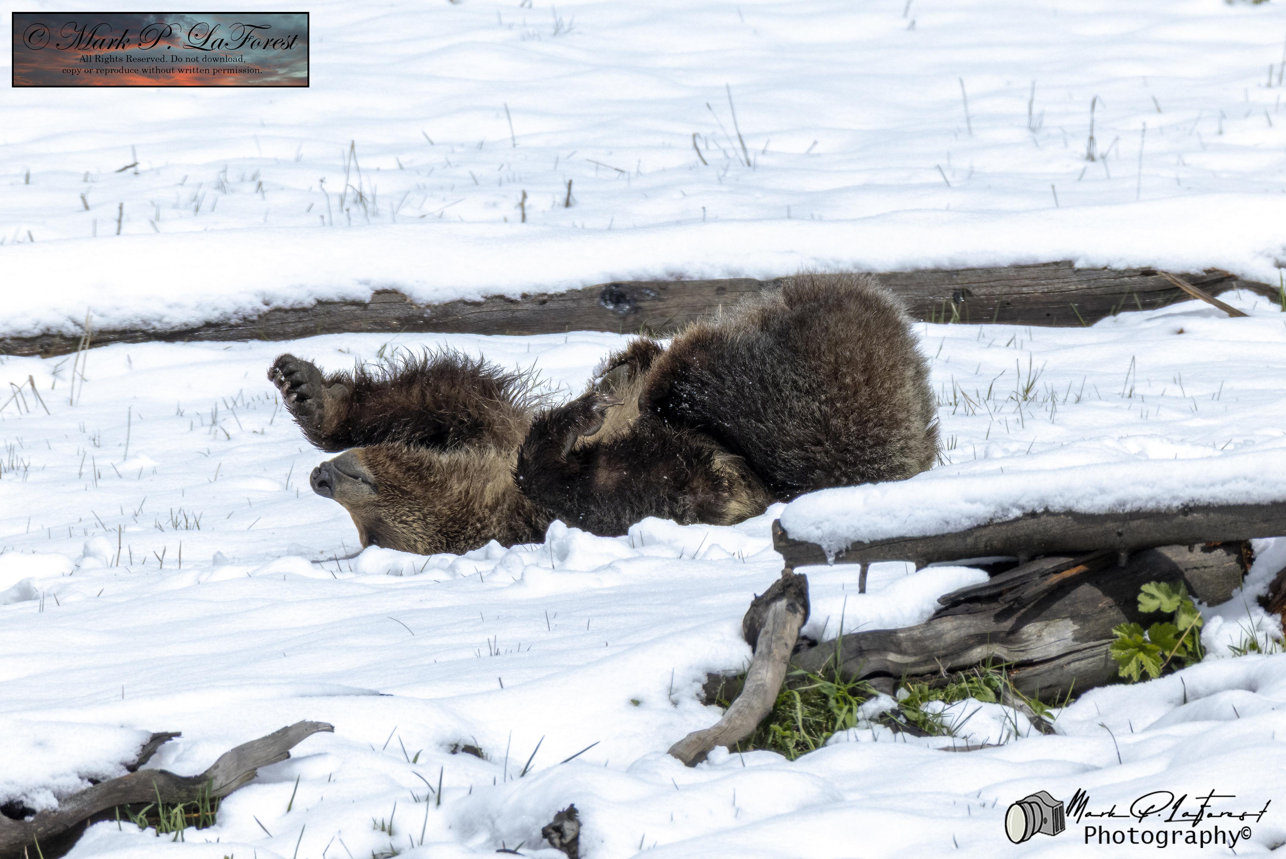 Snow's Cub rolling in the snow. Yellowstone National Park